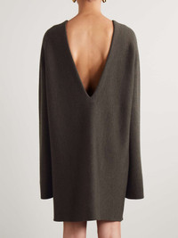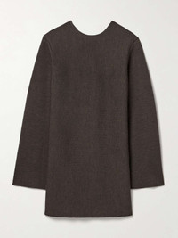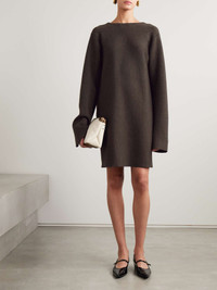 EDITORS'NOTES KHAITE's 'Elle' dress turns to reveal a deep V-neckline at the reverse, which beautifully frames your back. It's made from a wool-blend in an otherwise simple design with a focus on the loose shape, which is enhanced by knuckle-grazing sleeves. Wear yours with statement earrings and flats. SIZE & FIT - Fits true to size, take your normal size - Designed for a loose fit - Mid-weight, non-stretchy fabric - Model is 175cm/ 5'9" and is wearing a size Small DETAILS & CARE - Dark-brown melange wool-blend - Slips on - 95% wool, 5% polyamide - Designer color: Grapeseed