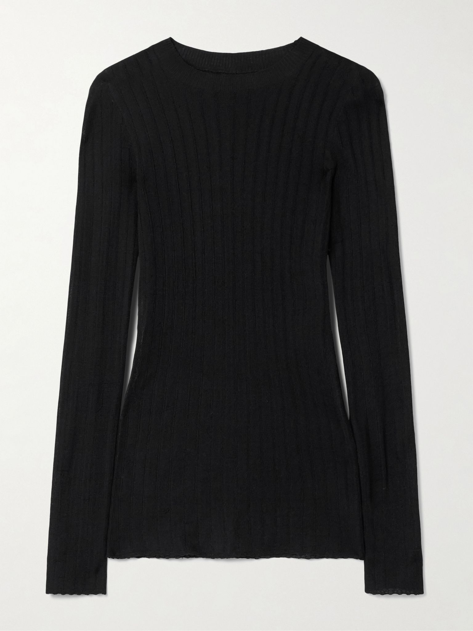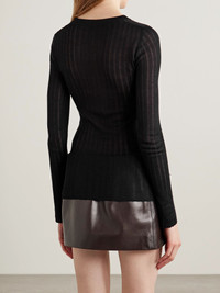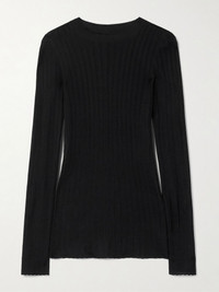 Elm ribbed silk and wool-blend top Black