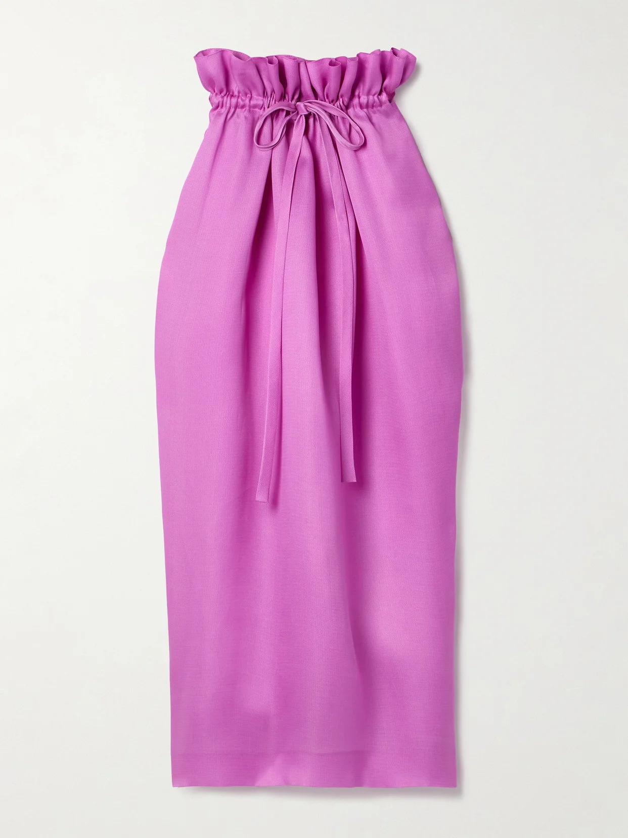 "In silhouettes that speak volumes, a signature sense of ease endures;" says KHAITE of its Fall '24 collection - that sentiment surely applies to this 'Ember' maxi skirt. It's made from fuschia silk-gazar that's gathered into elegant folds at the drawstring waistband.