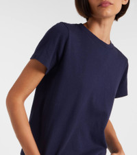 Khaite's minimalist designs exude modern sophistication and effortless elegance. Made in Portugal from navy-hued cotton jersey, the Emmylou T-shirt features a logo patch at the back of the neckline. Product Details - Material: 100% cotton - Care instructions: dry clean - Made in Portugal - Designer color name: Indigo - Item color: blue - Item number: P01077565 Size & Fit - True to size - Designed for a loose fit - Slightly stretchy fabric - Falls to the hip - The model seen in the picture is 178cm-5'10" and wearing a size XS