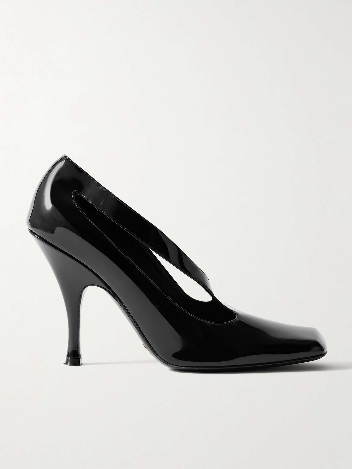 EDITORS'NOTES KHAITE's 'Eva' pumps are modeled after classic dance shoes and slashed with unexpected cutouts along the sides. Made from glossy patent-leather, they have slender 100mm heels and angular square toes. SIZE & FIT - Fits true to size, take your normal size - Italian sizing DETAILS & CARE - Heel measures approximately 100mm/ 4 inches - Black patent-leather (Calf) - Slip on