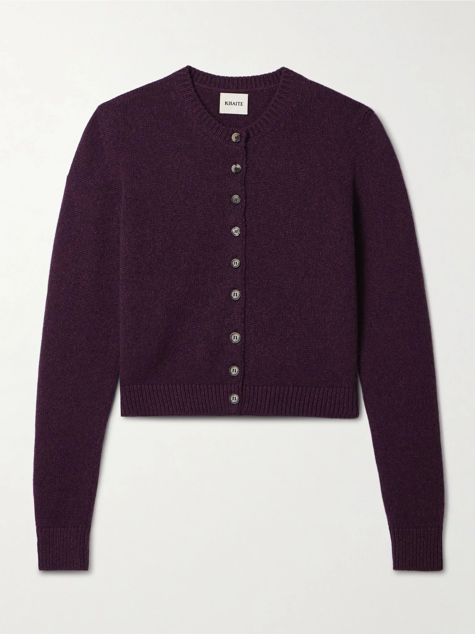 KHAITE's understated approach to design always results in pieces that are so easy to style. This 'Everheart' cardigan is made from soft, insulating cashmere for a slightly loose fit defined by ribbed trims and has horn buttons - fasten them all the way up or leave them undone when layering over a camisole. Size & Fit - Fits true to size, take your normal size - Designed for a slightly loose fit - Lightweight knit - Model is 180cm/ 5’11” and is wearing a size Small Details & Care - Burgundy cashmere - Button fastenings through front - 100% cashmere; buttons: 100% horn (Buffalo) - Designer color: Plum