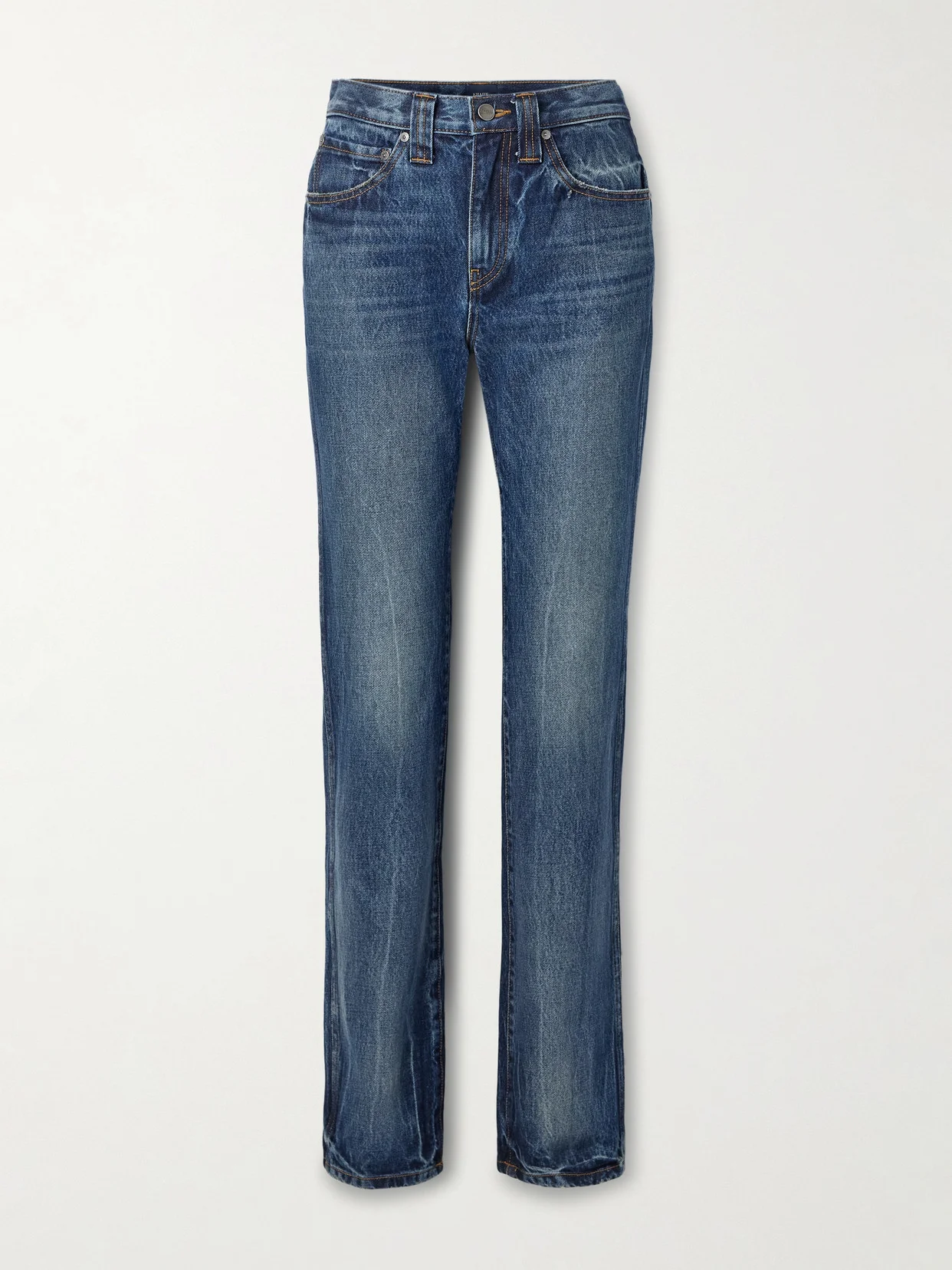 KHAITE's roots are in denim, so you can always rely on the label for well-made, classic styles like these 'Farley' jeans. Dyed a dark-blue 'Lykens' wash, they sit high on the waist and have straight legs. Look closely and you'll spot the brand's moniker carved into the metal button.