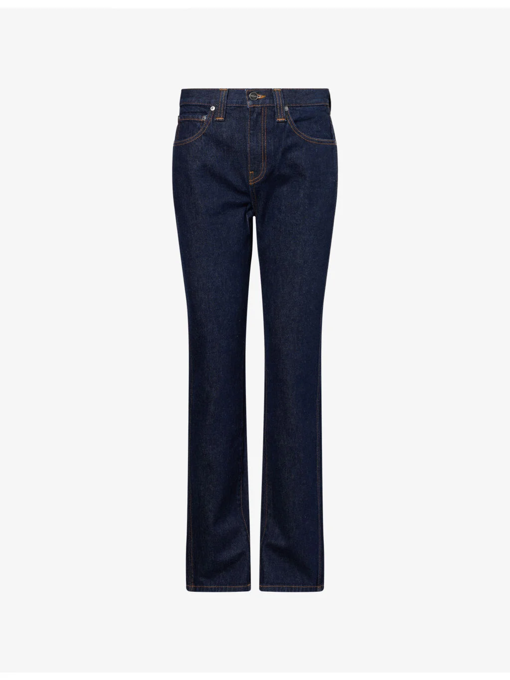 PRODUCT DETAILS - KHAITE denim jeans - 100% cotton - Button and zip-fly fastening - Slim fit, mid-rise, straight leg, structured waistband with belt loops, five pockets, indigo wash, contrast stitching, branded hardware - Machine wash cold - True to size - Model is 5ft 10in/1.78m and wears a size 26 - Midweight, non-stretch Ref: R04605504