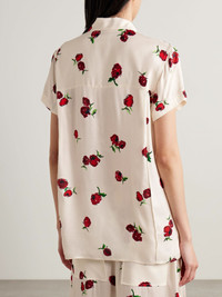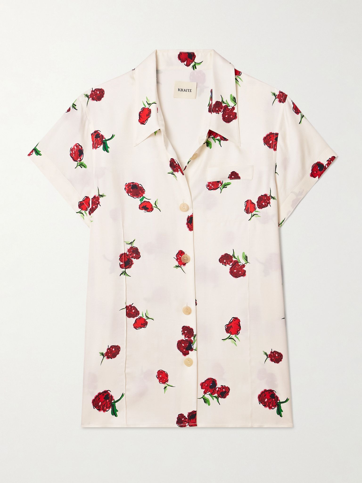 KHAITE's 'Keefe' shirt is sure to make an impact, especially when styled with the matching 'Mindy' pants. It's tailored from raspberry-printed silk-twill and fastens with natural horn buttons down the front - undo a few to create a more relaxed look. Size & Fit - Fits true to size, take your normal size - Designed for a loose fit - Lightweight, semi-sheer, non-stretchy fabric - Model is 180cm/ 5'11" and is wearing a size Small Details & Care - Ecru, green and red silk-twill - Button fastenings through front - 100% silk; buttons: 100% horn (Buffalo)
