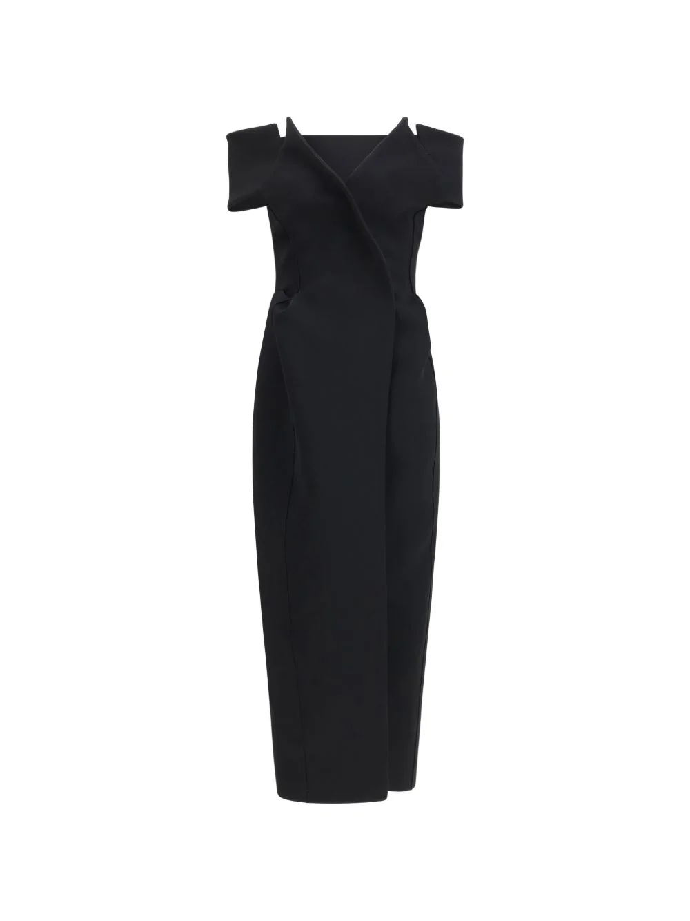 Gene off-shoulder midi dress Highlights - Black - Off-shoulder - Short sleeves - Zip fastening - Midi-length Made in United States Composition Polyester 100% Washing instructions Read Manufacturer Guidelines