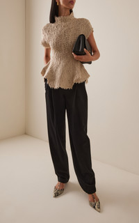 PRODUCT DETAILS - Short sleeves, mock neck, slim fit - Slip on - Unlined - Composition: 54% Hemp, 46% Silk - Color: Flax - Dry clean only - Spring/Summer '25