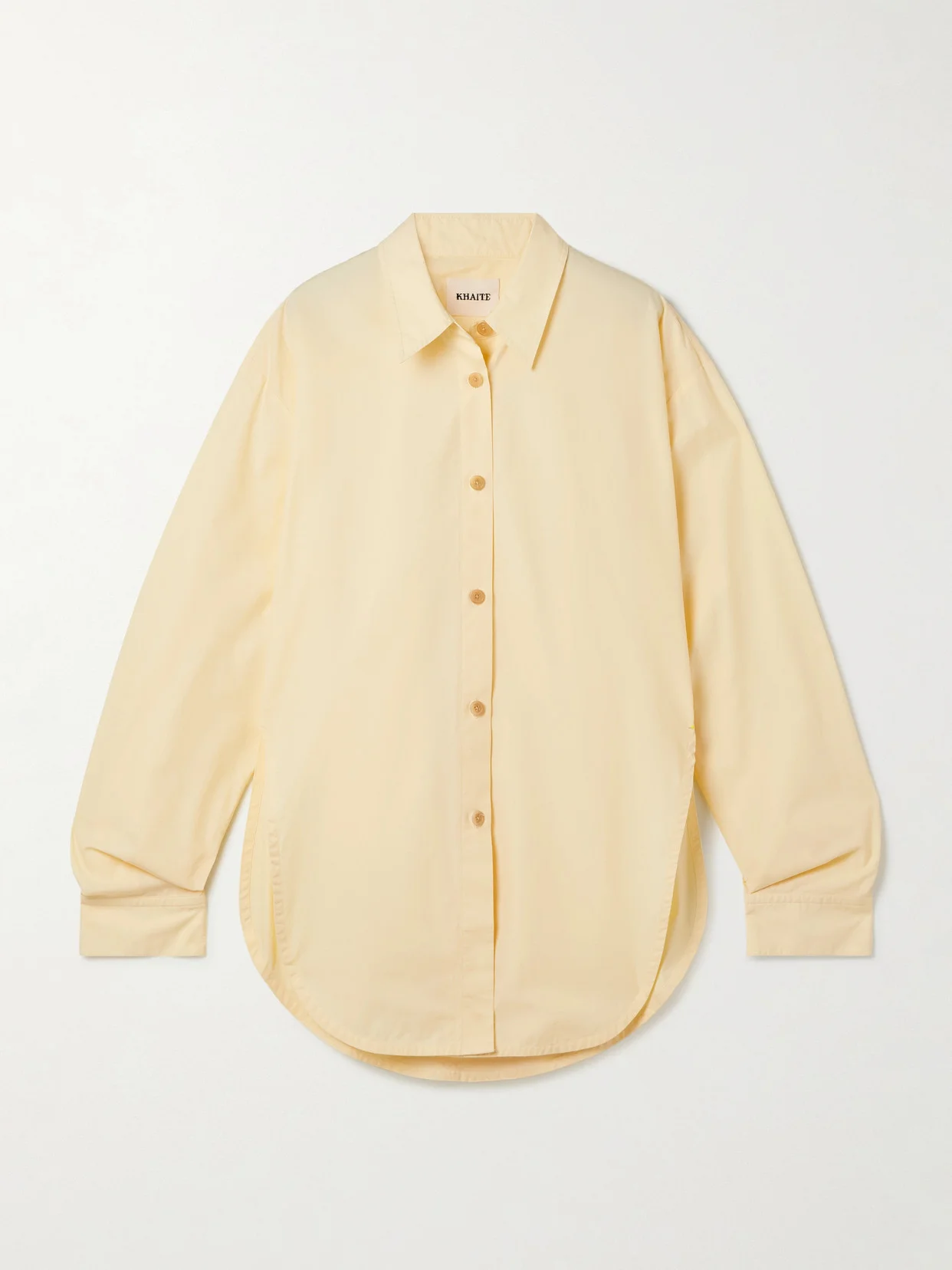 KHAITE's 'Goya' shirt is designed in a soft pastel-yellow - one of the season's most coveted colors. Cut from crisp cotton-poplin, it has a relaxed shape emphasized by dropped shoulders and a curved hem. Style yours alone or open over a tank.