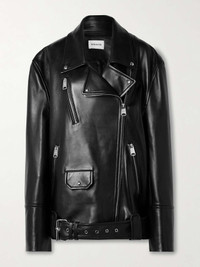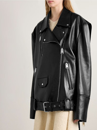 Hansel oversized belted leather biker jacket Black