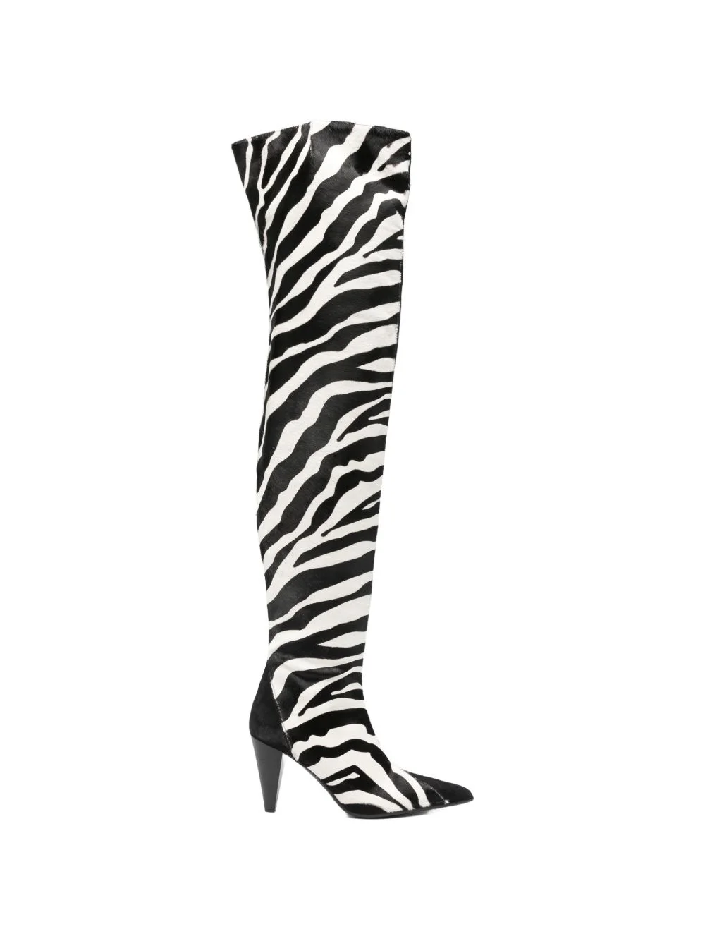 zebra-print boots Highlights - Black and white - Zebra print - Point toe - Over-the-knee style - Side zip fastening Made in Italy Composition Outer: Calf Leather 100% Lining: Calf Leather 100% Sole: Calf Leather 100% SIZE & FIT Measurement HEEL 3.54 in(9 cm)