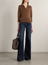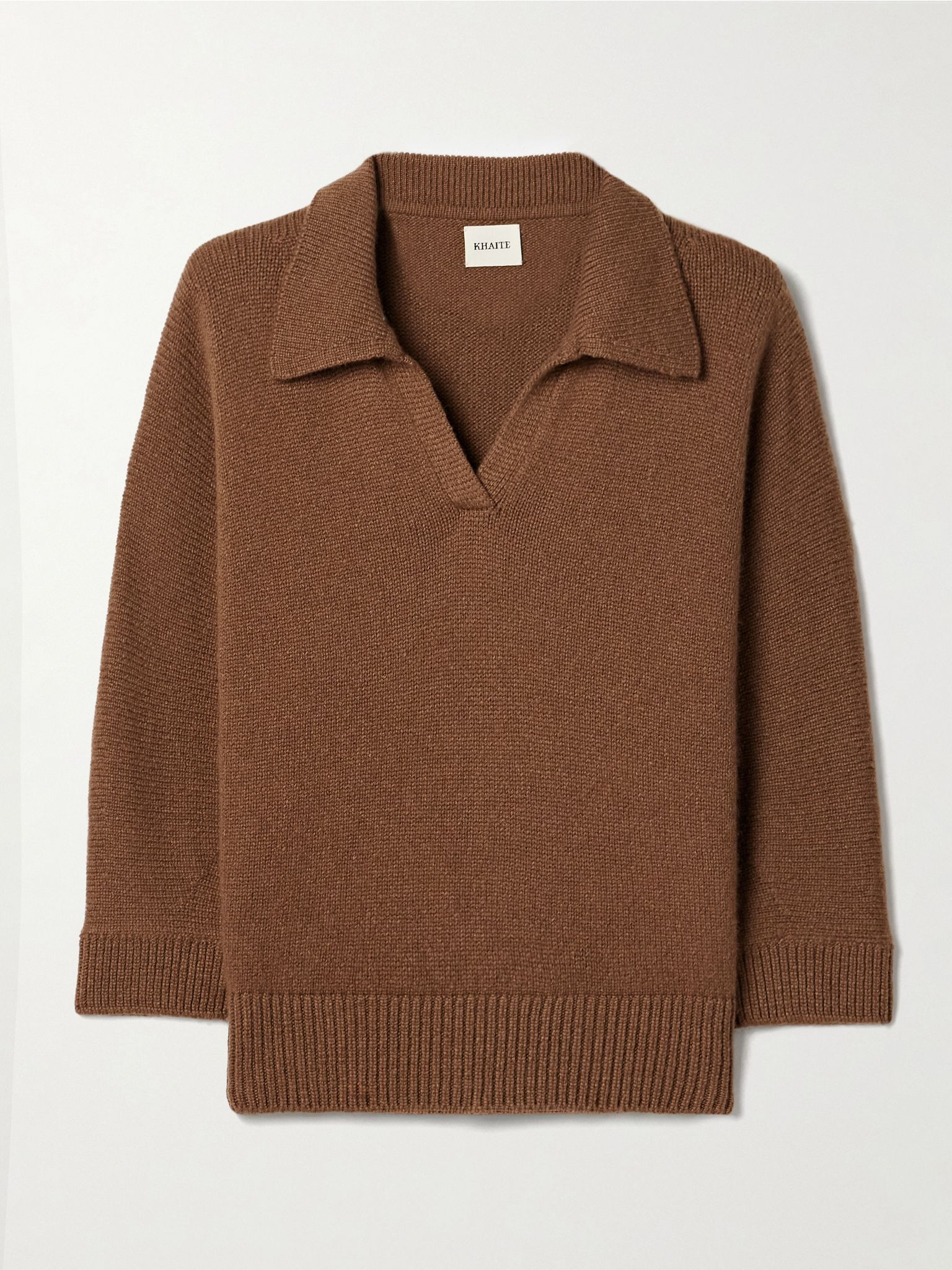KHAITE's polo shirt combines effortless style with everyday comfort. It's knitted from soft cashmere in an elegant 'Maple' shade and finished with ribbed trims. Wear yours with flared jeans. Size & Fit - Fits true to size, take your normal size - Designed for a slightly loose fit - Cropped sleeves - Lightweight knit - Model is 180cm/ 5’11” and is wearing a size Small Details & Care - Tan cashmere - Slips on - 100% cashmere - Designer color: Maple