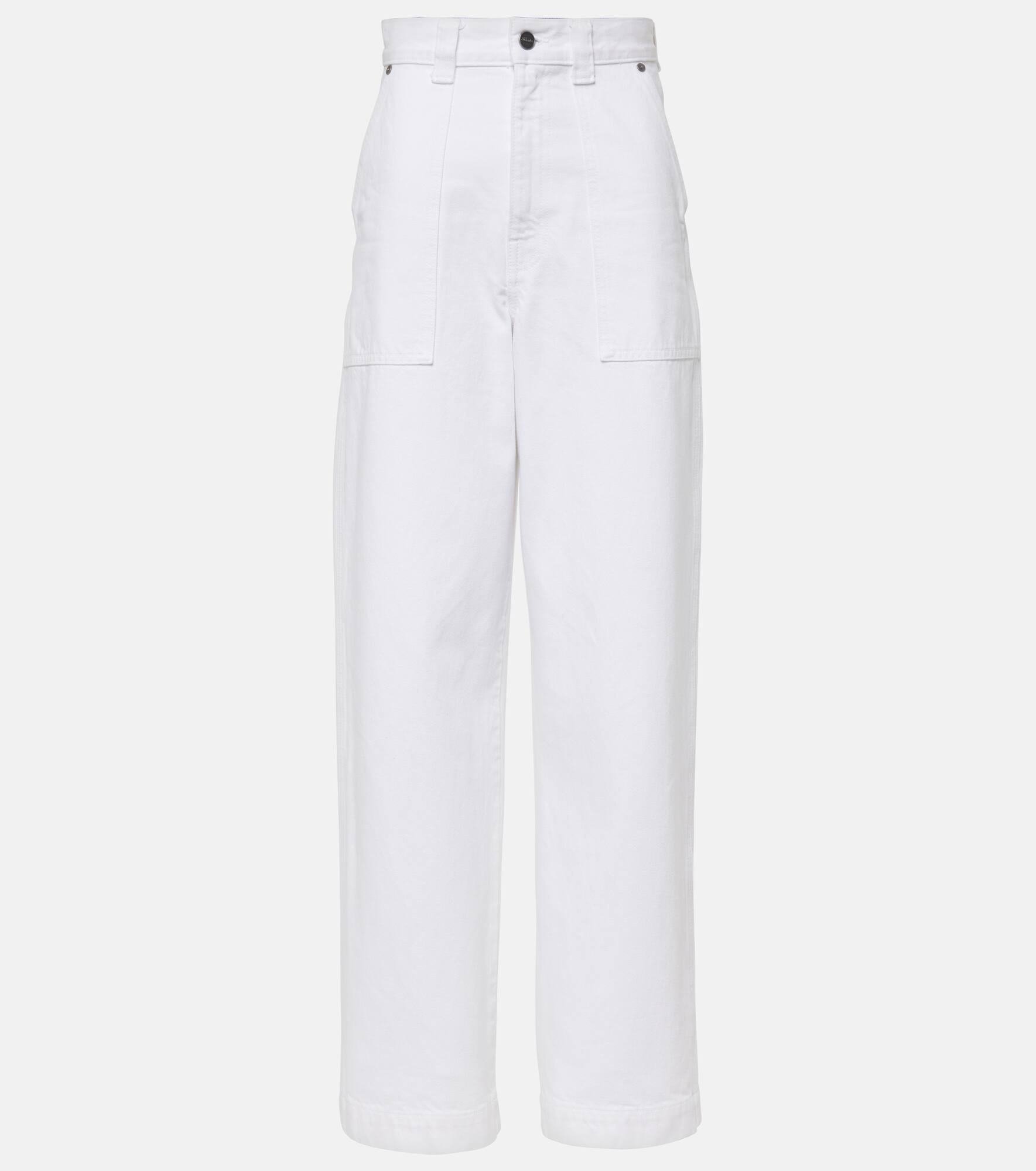 Product Details - Material: 100% cotton - Care instructions: machine wash at 30 degrees - Made in the USA - Pockets: side slit pockets, back pockets - Closure: zipper fly, button fastening - Belt loops - Item number: P00947573 Size & Fit - True to size - Non-stretchy fabric - Wide-leg - High-rise - The model seen in the picture is 178cm-5'10" and wearing a size 26