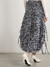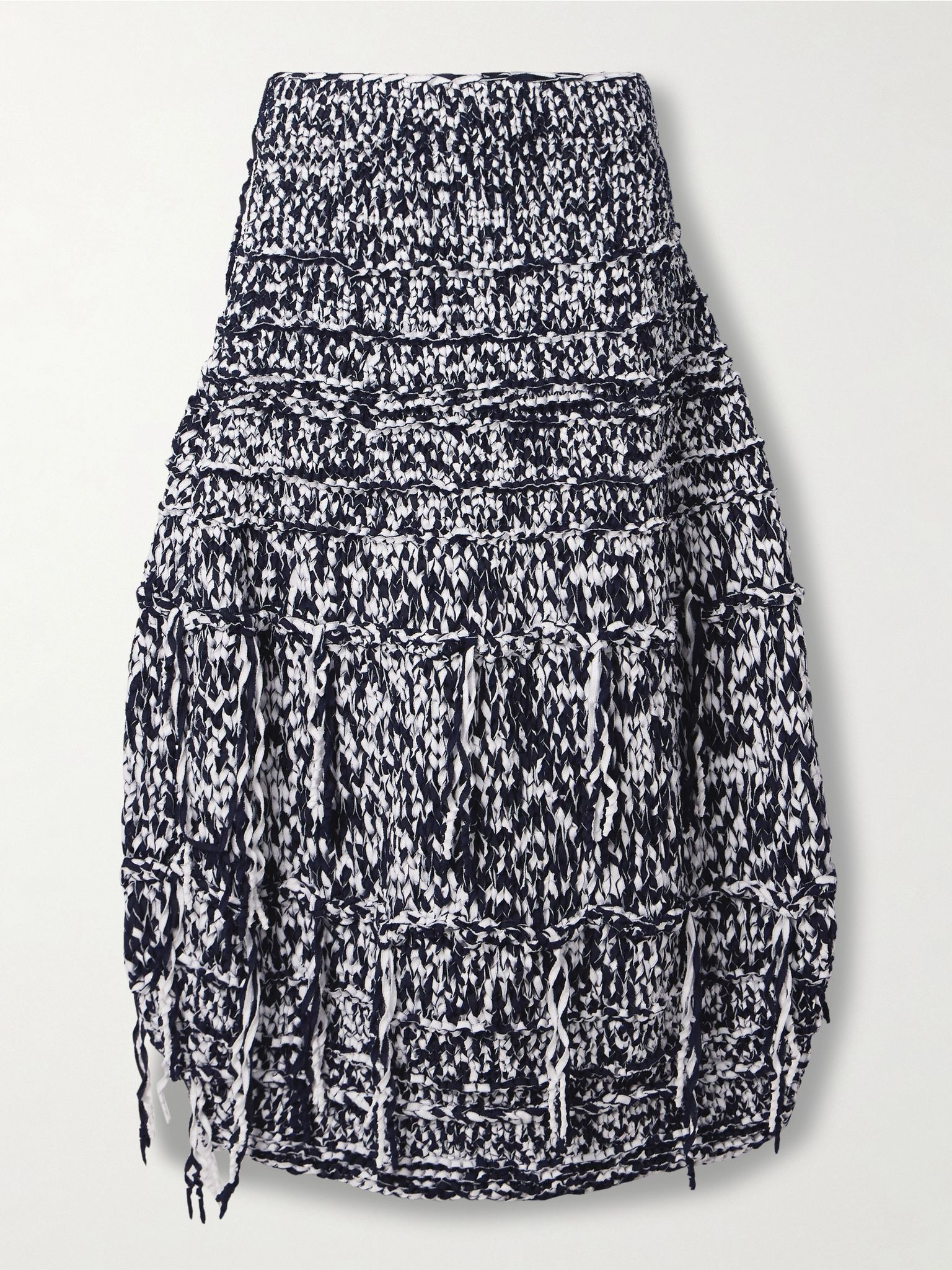 For Spring '25, KHAITE focuses on creating distinct textures and proportions. This 'Inna' skirt is made from a midnight-blue and white cotton-blend that's woven by hand and has fringing throughout the billow shape. Take a cue from the runway and style it with the matching top in our edit. Details & Care - Midnight-blue and white cotton-blend - Slips on - 78% cotton, 22% polyamide