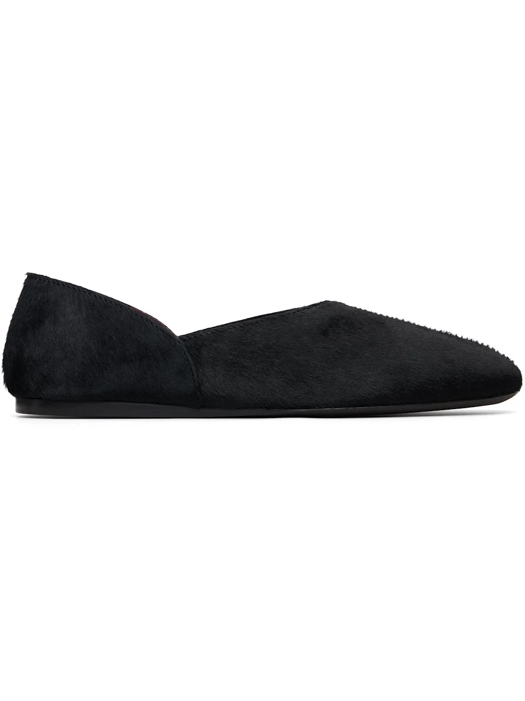 Calf-hair ballerina flats. · Gold-tone hardware at vamp · Cushioned insole · Buffed calfskin sole Supplier color: Black Upper: calfskin. Sole: calfskin. Made in Italy 261914F118001