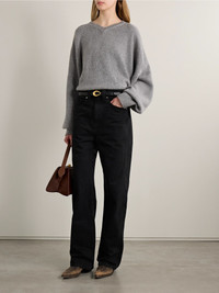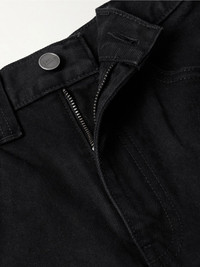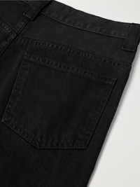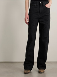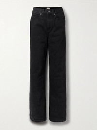 KHAITE's 'Bonnie' jeans have a relaxed boyfriend fit that calls to mind vintage styles. They're designed to sit on your natural waist and have the most subtle distressing along the pockets. The inky 'Carlyle' wash works especially well with jewel tones and dark neutrals. Size & Fit - Fits true to size, take your normal size - Mid-rise, boyfriend style - Mid-weight, non-stretchy fabric - Model is 180cm/ 5’11” and is wearing a size 26 Details & Care - Black denim - Button and concealed zip fastening at front - 100% cotton - Designer wash: Carlyle