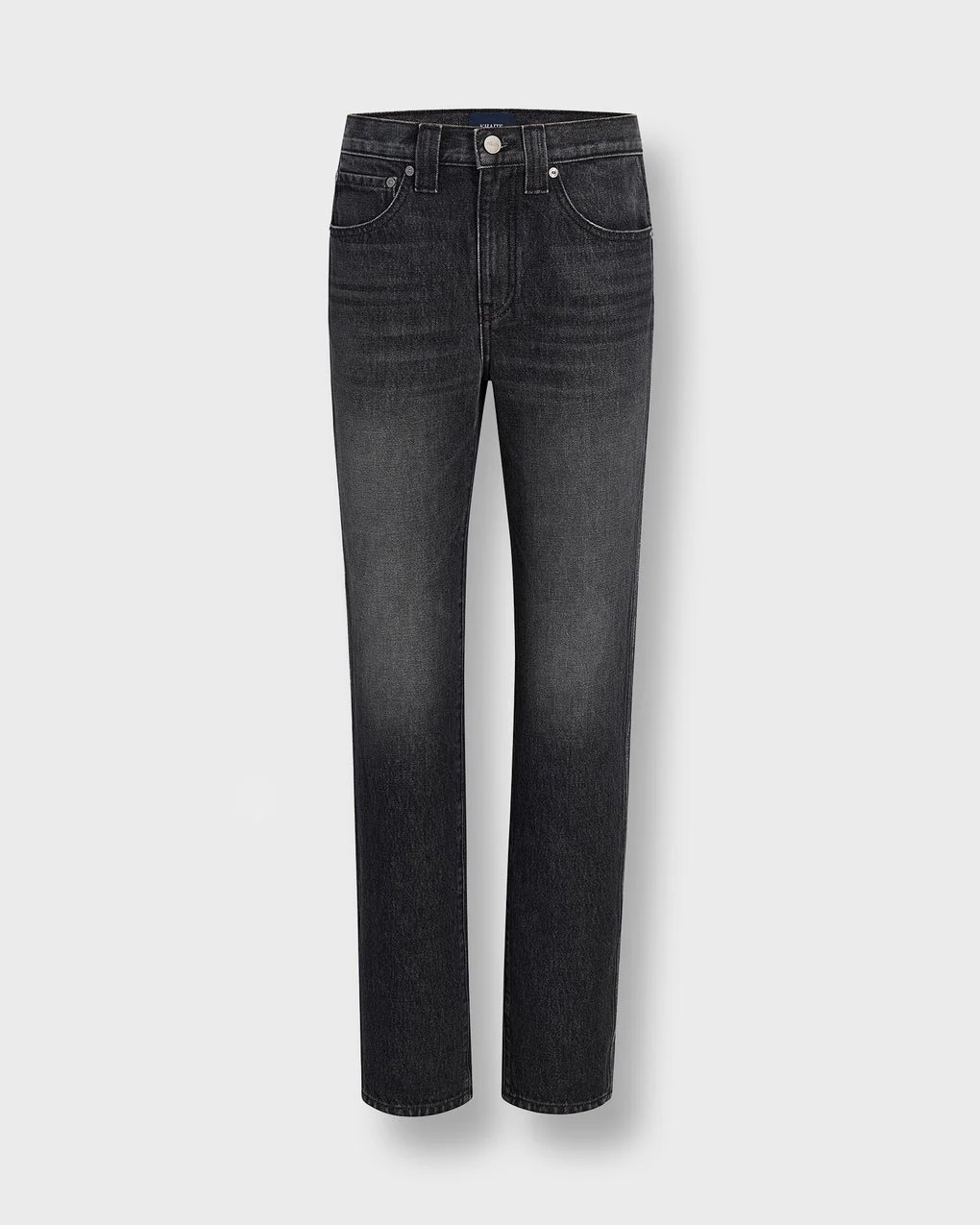 Jeans Farley from Khaite. Inspired by ’90s photographs of off-duty supermodels, this straight-leg silhouette brings a fresh ease to rigid denim. The mid-rise cut is designed to sit just below the navel, with squared and slim lines. Each hand-finished pair is completed with an antiqued nickel button. Size and Fit - Fits true to size, choose your usual size - The model is 175 cm tall and is wearing size 27 Specification - Article number - ID: 177409-024 - Brand: Khaite - Color: Denim - Washing Instructions: Place in freezer overnight or hand wash. - Made of: 100% cotton