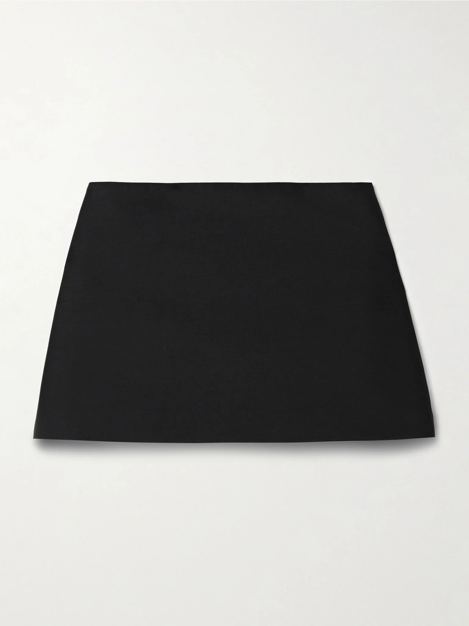 KHAITE is synonymous with chic, minimalist styles, like this ‘Jett’ skirt. It’s made from wool and silk-blend faille and has a mid-rise and mini hem. Size & Fit - Fits true to size, take your normal size - Mini-length, designed to be worn at the hip - Particularly short in length - Mid-weight, non-stretchy fabric - Model is 180cm/ 5’11” and is wearing a US 2 Details & Care - Black wool and silk-blend faille - Concealed zip fastening along side - 71% virgin wool, 29% silk; lining: 100% cupro