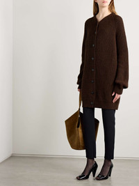 EDITORS'NOTES KHAITE's 'Jina' cardigan experiments with dramatic weight and proportion. Made from super soft cashmere that's gently brushed, it's rib-knitted for texture and finished with leather buttons. It looks chic with slim cigarette pants. SIZE & FIT - Fits true to size, take your normal size - Designed for an oversized fit, cut to be worn very loose - Weighted knit - Model is 180cm/ 5’11” and is wearing a size Small DETAILS & CARE - Chocolate cashmere - Button fastenings through front - 100% cashmere - Designer color: Chestnut