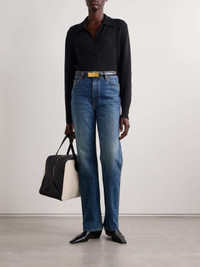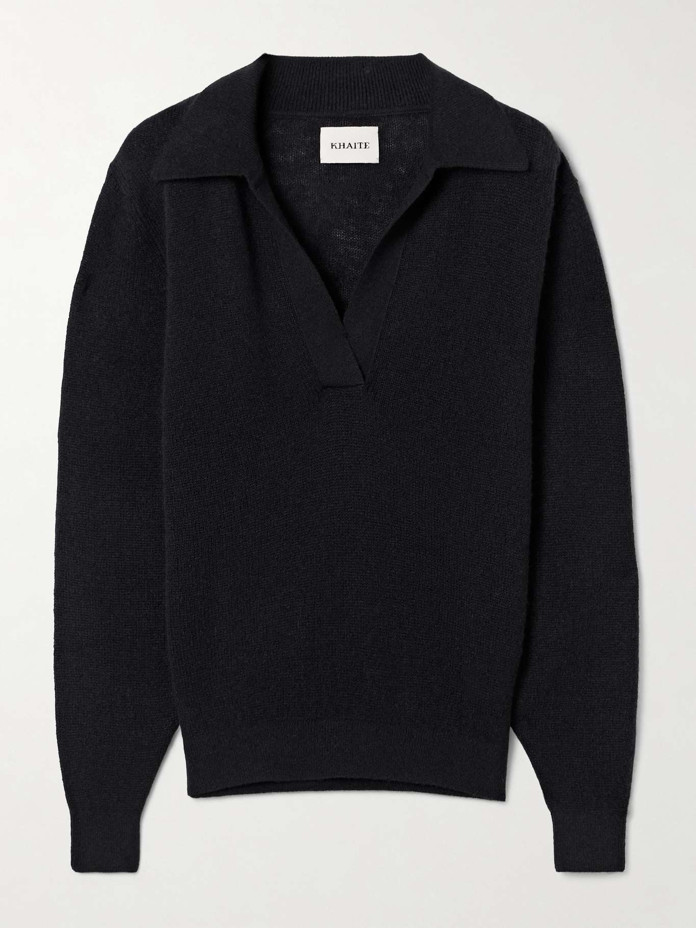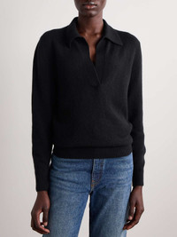 EDITORS'NOTES Khaite creates versatile staples that are made to last. Spun from a luxurious cashmere-blend with a hint of stretch, this 'Jo' sweater has a classic polo collar and relaxed silhouette defined by ribbed trims. Wear it half-tucked into tailoring. SIZE & FIT - Fits true to size, take your normal size - Designed for a relaxed fit - Mid-weight knit - Model is 177cm/ 5'10" and is wearing a size Small DETAILS & CARE - Black cashmere-blend - Slips on - 95% cashmere, 5% elastane - Dry clean