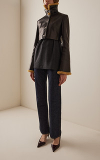 PRODUCT DETAILS - Slim fit, long sleeves, shearling-trimmed collar and cuffs, buckle detail, cropped length - Button fastening - Lined - Composition: 100% Lamb Leather - Color: Black - Dry clean - Fall '25