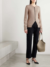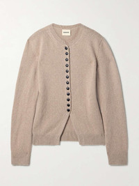 EDITORS'NOTES KHAITE's 'Josette' cardigan showcases the brand's reputation for fine, luxurious knitwear. It's spun from warm cashmere and fastens with a row of closely stacked leather buttons. It's the perfect weight to wear through multiple seasons. SIZE & FIT - Fits true to size, take your normal size - Designed for a slightly loose fit - Lightweight knit - Model is 180cm/ 5'11" and is wearing a size Small DETAILS & CARE - Mushroom cashmere - Button fastenings through front - 100% cashmere - Designer color: Putty