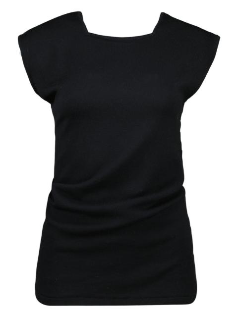 Josif asymmetric-neckline T-shirt Highlights - Chocolate brown - Cap sleeves - Sculptural silhouette - Draped detailing - V-neckline - Fitted design Made in Italy Composition Merino 100%