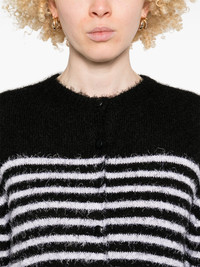 Jules cardigan Highlights - Black - Front button fastening - Horizontal stripe pattern - Crew neck - Long sleeves Made in Italy Composition Silk 58%, Cashmere 42% SIZE & FIT Model measurements Height 5 ft 9 in(1.75 m) Bust/Chest 34.64 in(88 cm) Hips 36.61 in(93 cm) Waist 26.37 in(67 cm) Measurement SLEEVE LENGTH 23.42 in(59.5 cm) LENGTH 19.68 in(50 cm) WAIST 35.43 in(90 cm) FittingInformation Designed for a relaxed fit, this piece allows for comfort and movement when worn Made with a midweight knit, this piece offers some stretch