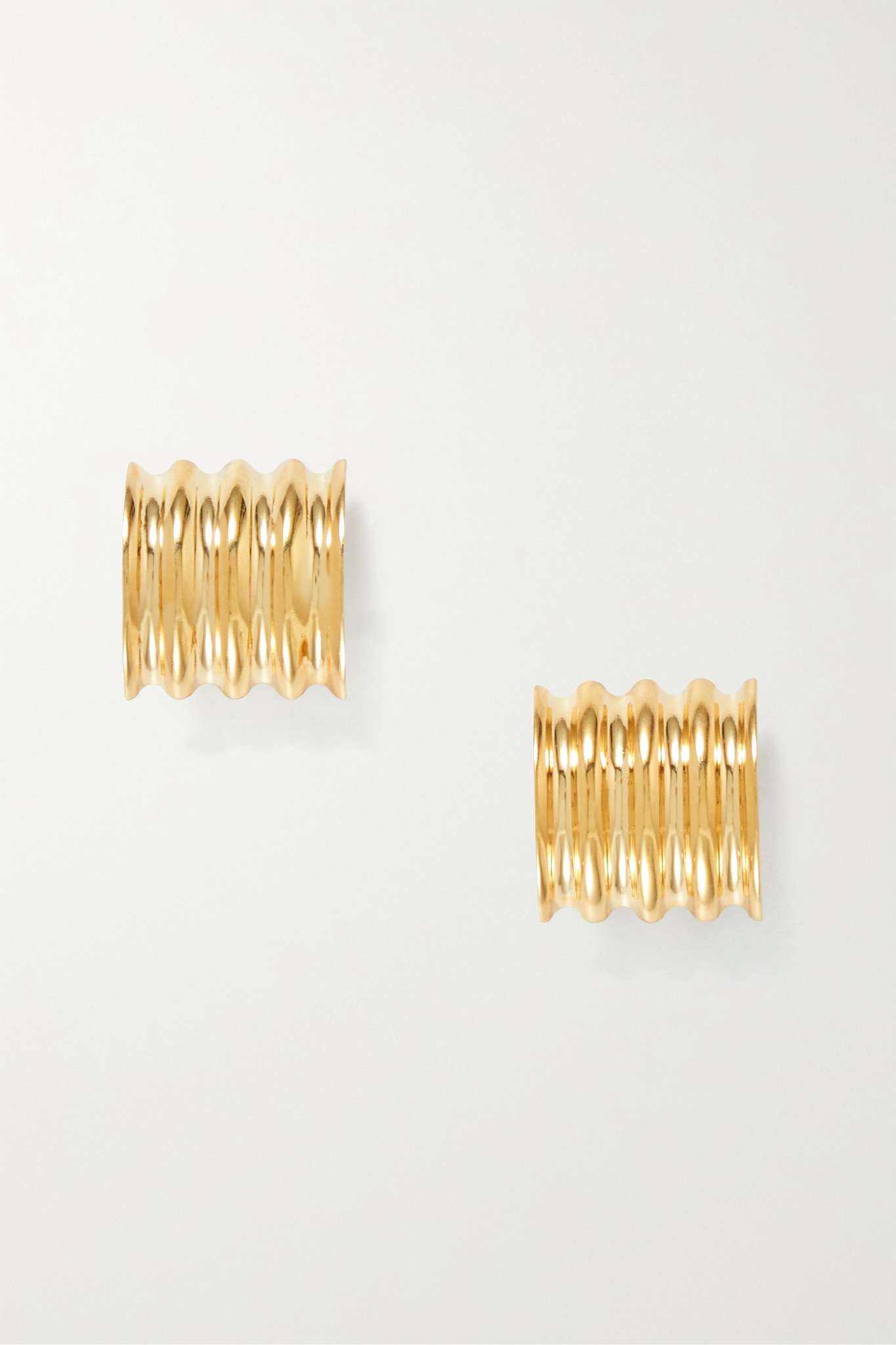 EDITORS'NOTES Khaite's 'Julius' earrings are designed in a sizable, curved shape that fits around the lobe. Made in Italy from gold-tone brass, they have an interesting ridged texture that enhances the light-reflecting finish. SIZE & FIT This item’s measurements are: - Height: 2.5cm / 1in - Width: 3cm / 1.2in - Drop: 1.5cm / 0.6in DETAILS & CARE - Post and clasp fastening for pierced ears