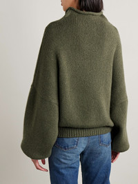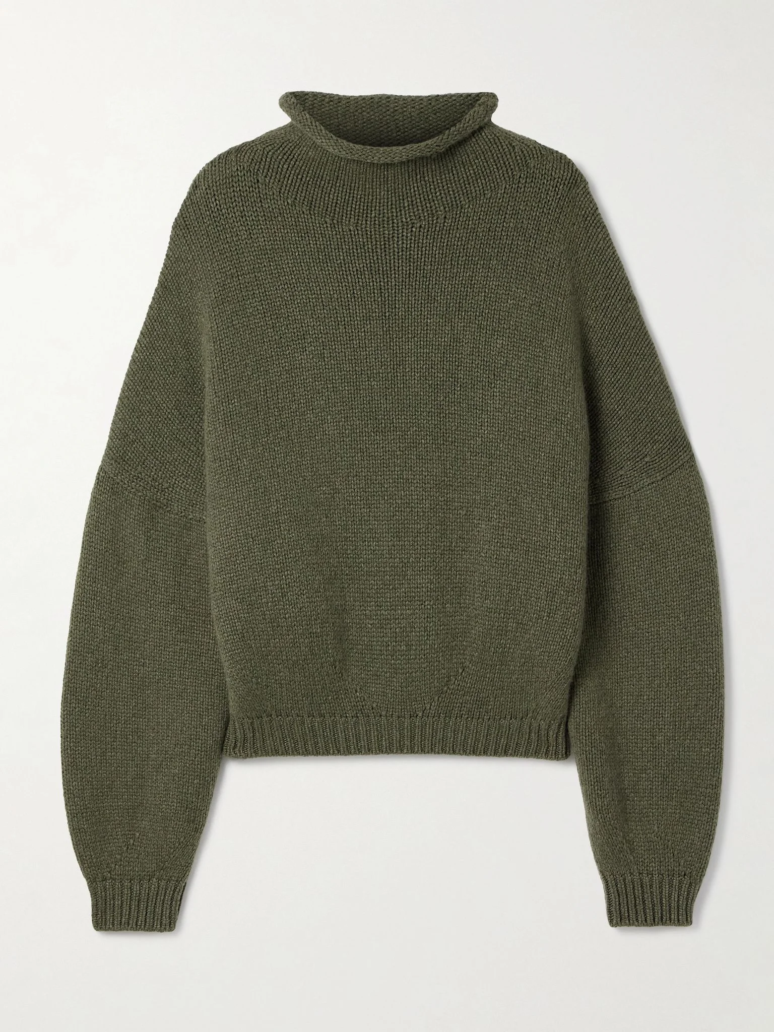 It's the simple silhouette and luxurious fabrics that make KHAITE's designs such worthy investments. This 'Juniper' sweater has been made in Italy from sumptuous cashmere in a loose shape emphasized by generously dropped shoulders and a slouchy turtleneck. The ribbed hem makes it ideal for tucking. Size & Fit - Fits true to size, take your normal size - Intended for a loose fit - Drop shoulder seam - Mid-weight knit - Model is 180cm/ 5'11" and is wearing a size Small Details & Care - Army-green cashmere - Slips on - 100% cashmere - Designer color: Pine