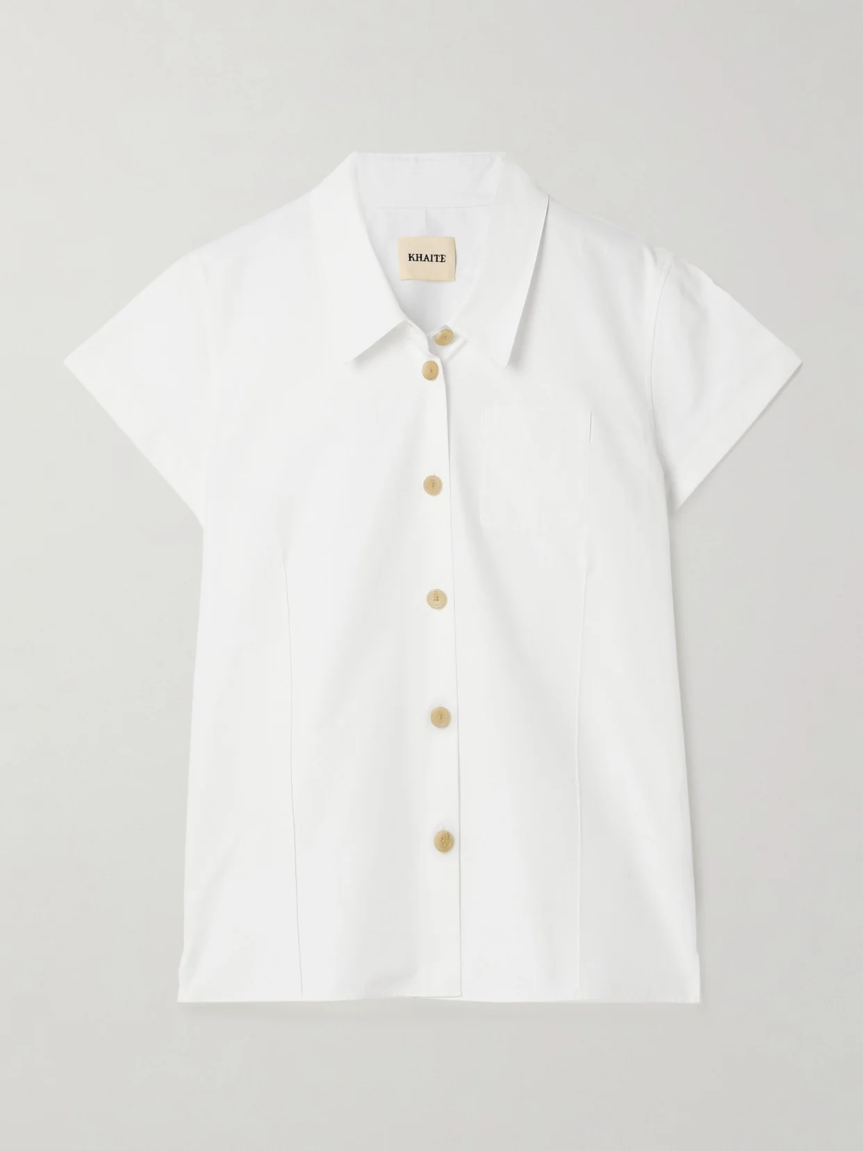 KHAITE's 'Keefe' shirt will complement a variety of outfits and occasions. It's tailored from crisp cotton-poplin and fastens with natural horn buttons down the front - undo a few to create a more relaxed look.