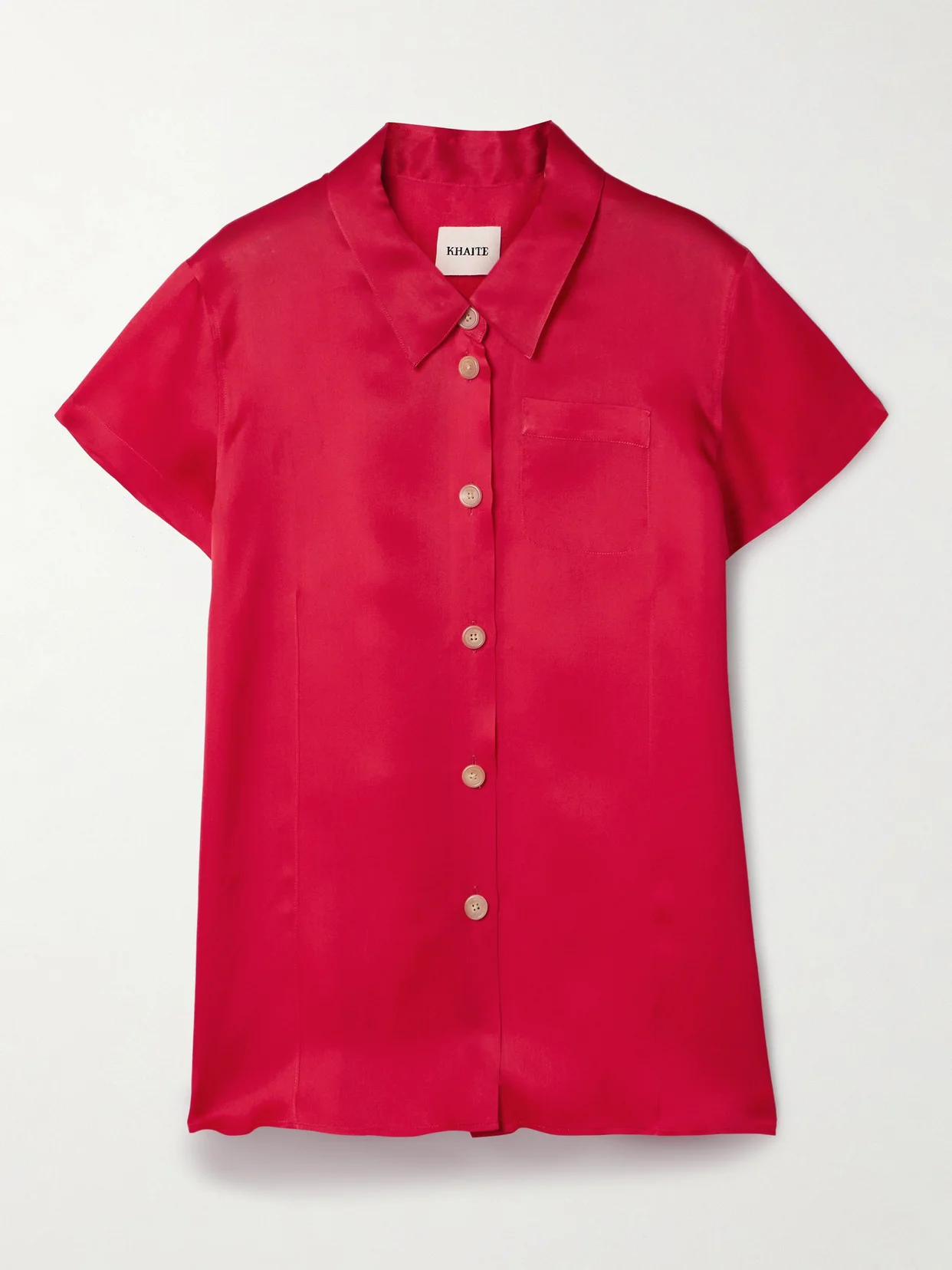 KHAITE's 'Keefe' shirt will complement a variety of outfits and occasions. It's tailored from crisp silk-organza and fastens with natural horn buttons down the front - undo a few to create a more relaxed look.