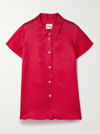 KHAITE's 'Keefe' shirt will complement a variety of outfits and occasions. It's tailored from crisp silk-organza and fastens with natural horn buttons down the front - undo a few to create a more relaxed look. Details & Care - Red silk-organza - Button fastenings through front - 100% silk; buttons: 100% horn (Buffalo) - Designer color: Raspberry