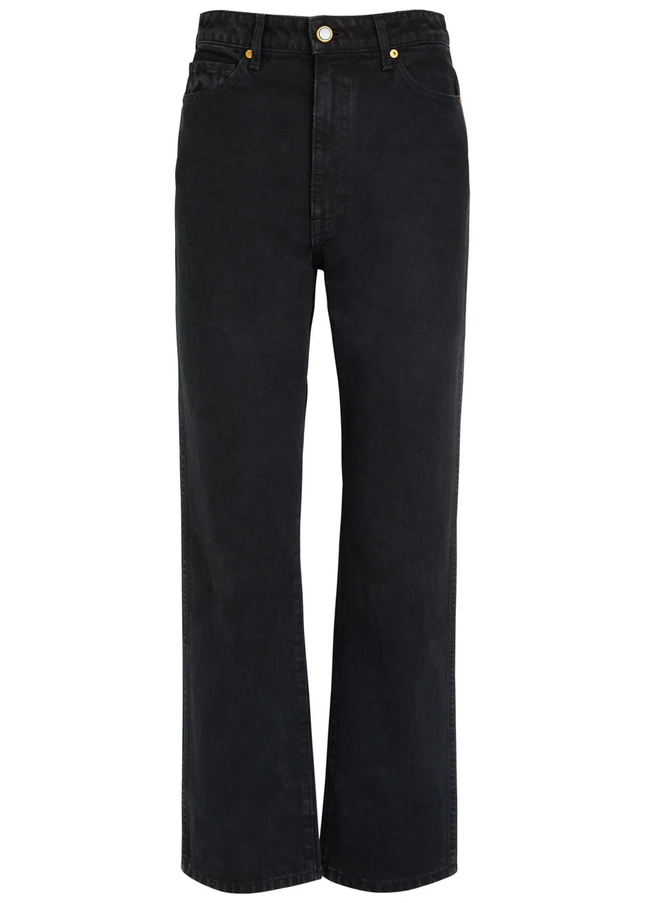 Info & Care KHAITE denim jeans High-rise fit, straight-leg cut, belt loops, five pockets, whiskered and faded finish Partially concealed button and zip fastenings at front; 98% cotton, 2% polyurethane Hand wash; Size & Fit Front rise: 10 inches/ 25.5cm Inside leg length: 28 inches/ 71cm Midweight Model is 5'8"/ 173cm and wears a size;W27