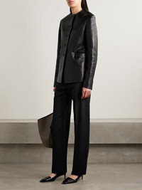 KHAITE's 'Callen' pants will be the foundation of a myriad of looks - style them with everything from simple tanks to cozy sweaters. They're tailored in a straight-leg shape from crepe that's blended with plenty of wool and traced with neatly pressed creases along the front. Size & Fit - Fits true to size, take your normal size - High-rise, cut for a straight-leg fit - Mid-weight, non-stretchy fabric - Model is 180cm/ 5'11" and is wearing a size 26 Model measurements: - Bust: 79cm/ 31" - Waist: 61cm/ 24" - Hip: 89cm/ 35" Details & Care - Black crepe - Concealed hook, button and zip fastening at front - 78% viscose, 21% virgin wool, 1% elastane