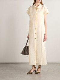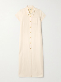 KHAITE's 'Effy' dress exudes sophistication, even on more casual days. It's made from crisp silk and cotton-blend organza and fastens with horn buttons down the front. Accessorize with a neutral bag and shoes. Size & Fit - Fits true to size, take your normal size - Designed for a loose fit - Lightweight, semi-sheer, non-stretchy fabric - Model is 180cm/ 5'11" and is wearing a size Small Details & Care - Cream silk and cotton-blend organza - Button fastenings through front - 53% silk, 47% cotton; buttons: 100% horn (Buffalo)