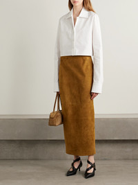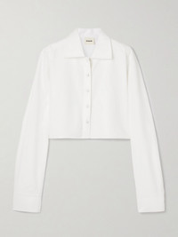 KHAITE offers a refined interpretation of a menswear classic with this cropped 'Jasen' shirt. It's cut from tightly woven Oxford cloth and fastens with covered buttons. Balance the loose, boxy fit with a streamlined skirt or slim tailoring.