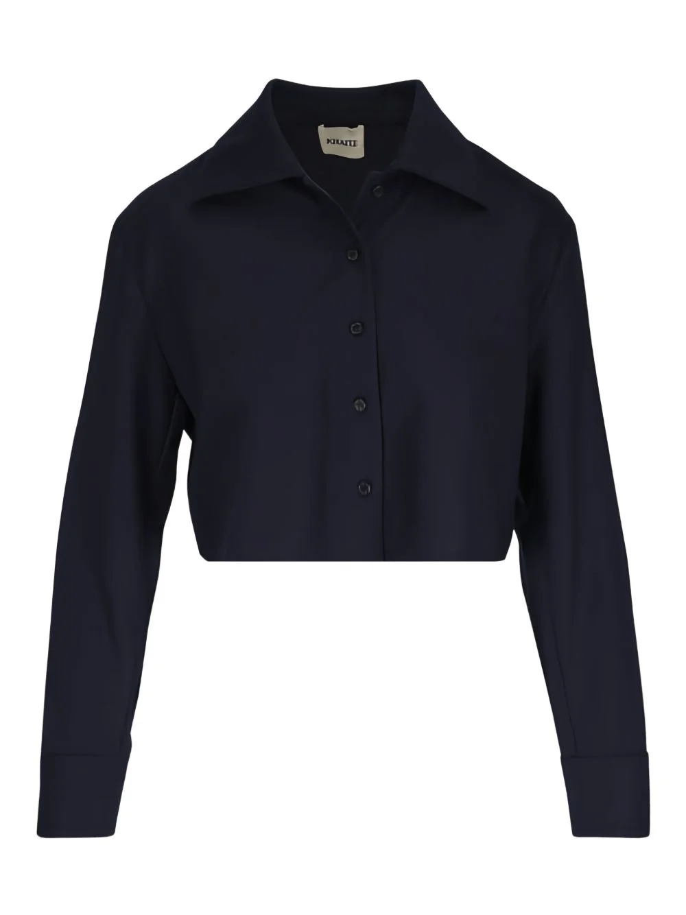 collared cropped blouse Highlights - Dark navy blue - Cropped - Button front fastening - Long sleeves - Collared Made in United States Composition Wool 50%, Cashmere 50% Washing instructions Read Manufacturer Guidelines