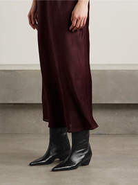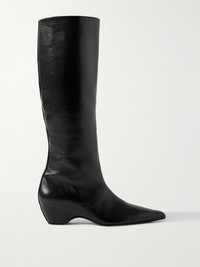 KHAITE's 'Sybil' boots are set on sculptural, contoured heels that seamlessly integrate into the design for a distinct, modern shape. This knee-high pair is made from vegetable-tanned glossed-leather that develops a natural patina over time and has chic pointed toes. You'll never run out of ways to style them. Size & Fit - Fits true to size, take your normal size - Italian sizing Details & Care - Heel measures approximately 40mm/ 1.5 inches - Black glossed-leather (Calf) - Pull on