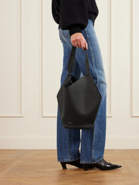 The unstructured, sculptural shape of KHAITE's 'Lotus' tote is inspired by the fluidity of a scarf. Sized to fit your phone, wallet, water bottle and small compact, this spacious style has been made in Italy from butter-soft textured-leather and left unlined for lightness. It has a round base and slim top handle that fits comfortably over the shoulder. Details & Care - Black textured-leather (Calf) - Top handle - Detachable zipped pouch - Fully lined - Open top