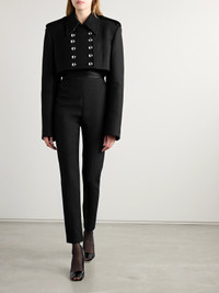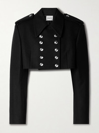 The jackets in KHAITE's Fall '24 collection are inspired by the refined styles Catherine Holstein's mother wore in the '80s and '90s - the designer dedicated the entire collection to her memory. This cropped 'Leara' version is tailored from wool-blend felt and has padded shoulders topped with epaulets and polished silver-tone snaps.