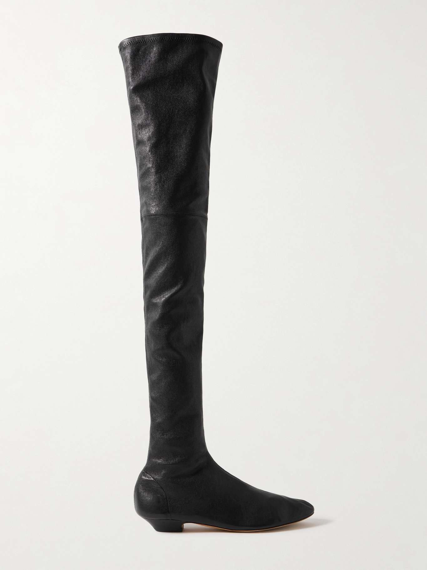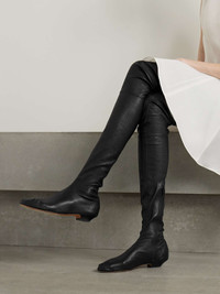 EDITORS'NOTES KHAITEs boots are updated in a dramatic over-the-knee silhouette for Fall '24. They're made from supple leather for a close, sock-like fit and rest on low 15mm heels. Wear them with mini and midi hemlines alike. SIZE & FIT - Fits true to size, take your normal size - Italian sizing DETAILS & CARE - Heel measures 15mm/ 0.5 inches - Black leather (Lamb) - Zip fastening along side