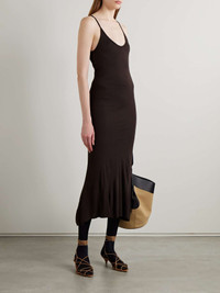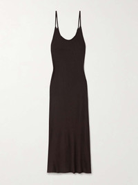 Understated and effortless, KHAITE's 'Leesal' midi dress can easily be styled for a number of occasions by just switching up the accessories. It's made from two layers of soft, lightweight jersey for a close fit and has a scooped neckline and floaty hem. Wear yours with tights and sandals or pare it back to ballet flats. Size & Fit - Fits true to size, take your normal size - Designed for a close fit - Lightweight knit - Model is 180cm/ 5’11” and is wearing a size Small Details & Care - Dark-brown jersey - Slips on - 100% viscose