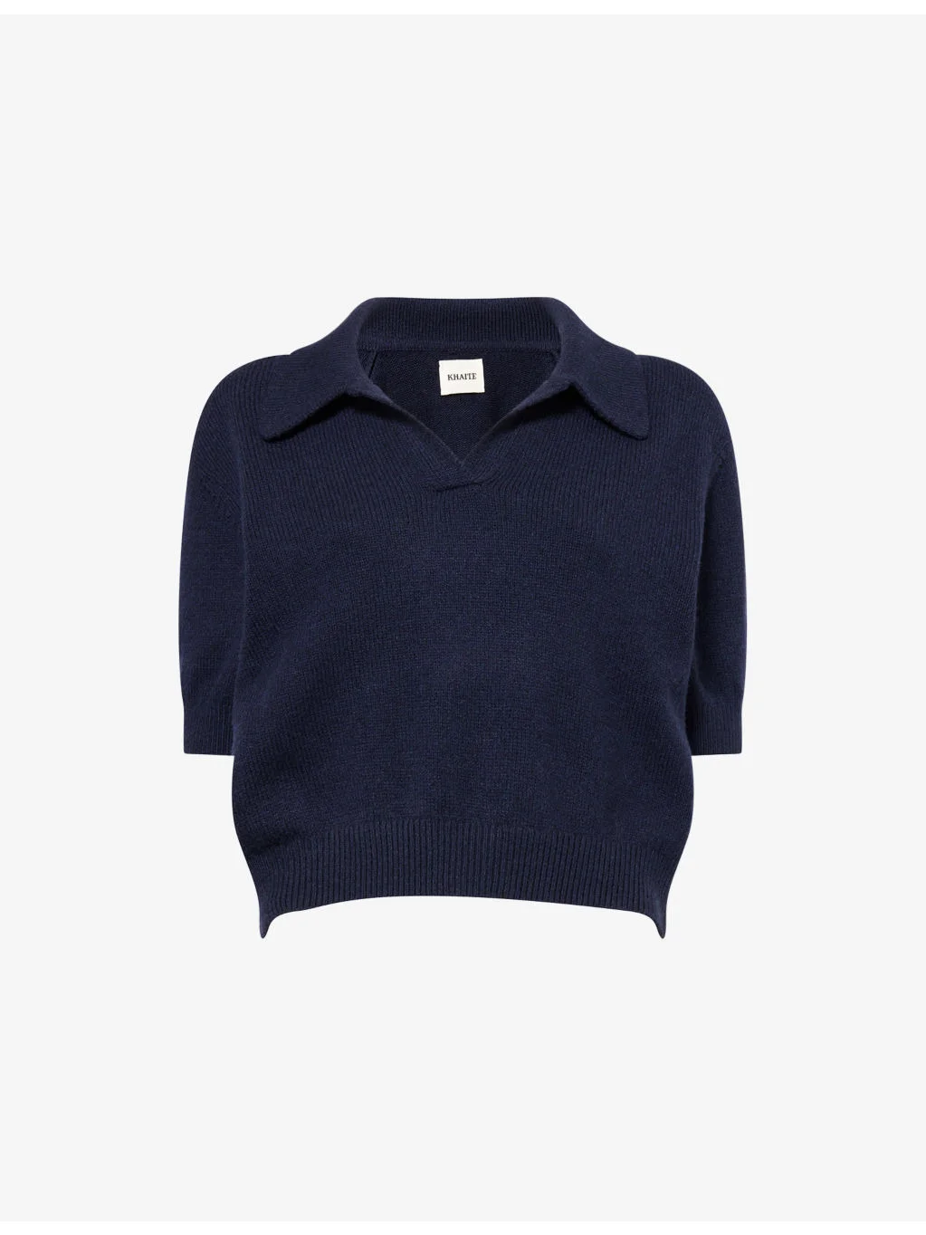 PRODUCT DETAILS - KHAITE wool-blend top - 60% wool, 33% cashmere, 7% elastane - Regular fit, cropped length, classic collar, open placket, short puff sleeves, ribbed trims - Dry clean - Model is 5ft 10in/1.78m and wears a size small - Midweight, stretchy Ref: R04605544