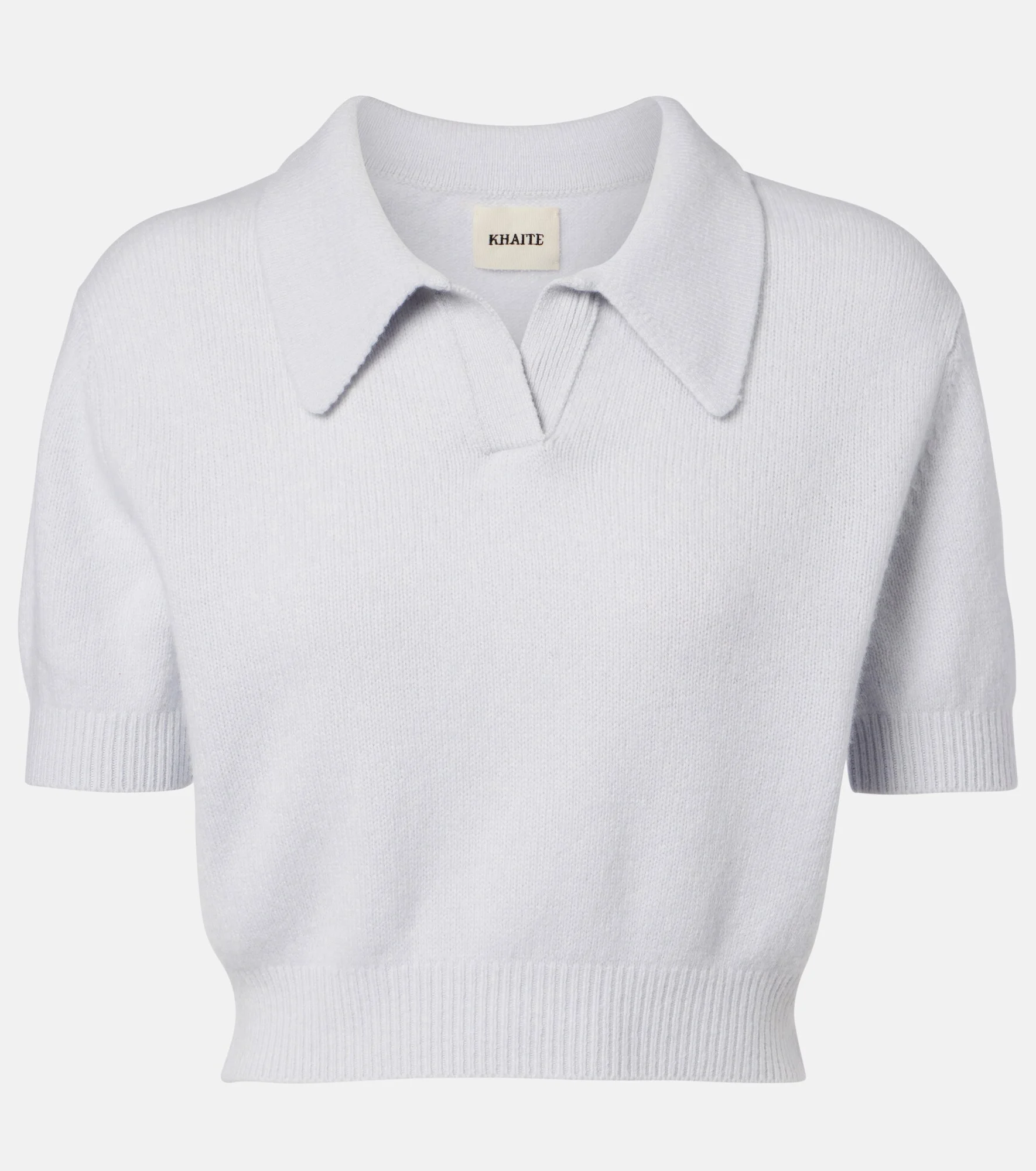 Khaite's minimalist designs exude modern sophistication and effortless elegance. The Leni top has a cropped silhouette is made in Italy from wool and cashmere. Product Details - Material: 65% wool, 35% cashmere - Care instructions: dry clean - Made in Mongolia - Color: grey - Designer color name: Ice Blue - Item color: gray - Cuff: ribbed - Hem: ribbed - Item number: P01145667 Size & Fit - True to size - Cinched waist - Slightly stretchy fabric - Slightly cropped - Height of model is 174cm-68.5" and wears a size XS