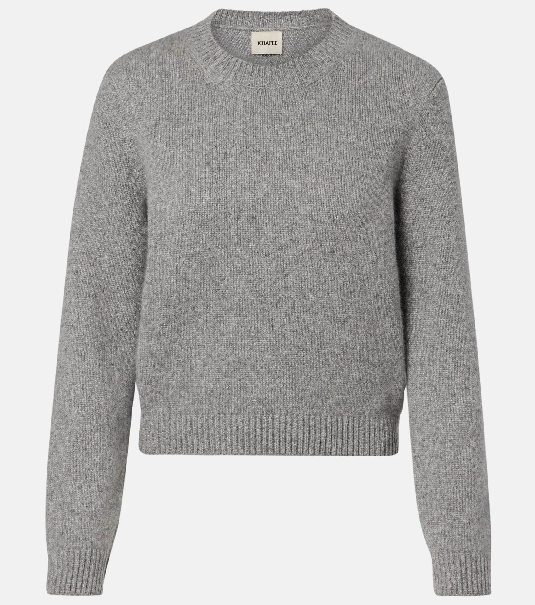 Khaite's minimalist designs exude modern sophistication and effortless elegance. Made in Italy from grey cashmere, the Leta sweater is a classic crewneck style with ribbed-knit trims. Product Details - Material: 100% cashmere - Care instructions: dry clean - Made in Italy - Color: grey - Designer color name: Fog - Item color: gray - Collar: crewneck - Cuff: ribbed - Hem: ribbed - Item number: P01145715 Size & Fit - True to size - Straight fit - Slightly stretchy fabric - Slightly cropped - The model seen in the picture is 178cm-5'10" and wearing a size XS