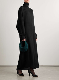 EDITORS'NOTES While designing KHAITE's Fall '24 collection, Catherine Holstein focused on draping, letting pieces mold to the body and fall away naturally - she said that "it was in those moments we found them to become the most beautiful". This 'Lexi' dress is made from flowy silk-chiffon and has a turtleneck with long, languid ties that wrap around and temper the open back. Billowy blouson sleeves add to its effortless feel. SIZE & FIT - Fits true to size, take your normal size - Designed for a relaxed fit - Long in the sleeves - Mid-weight, fluid, non-stretchy fabric - Model is 175cm/ 5’9” and is wearing a size Small DETAILS & CARE - Black silk-chiffon - Slips on - 100% silk; buttons: 100% horn (Buffalo)