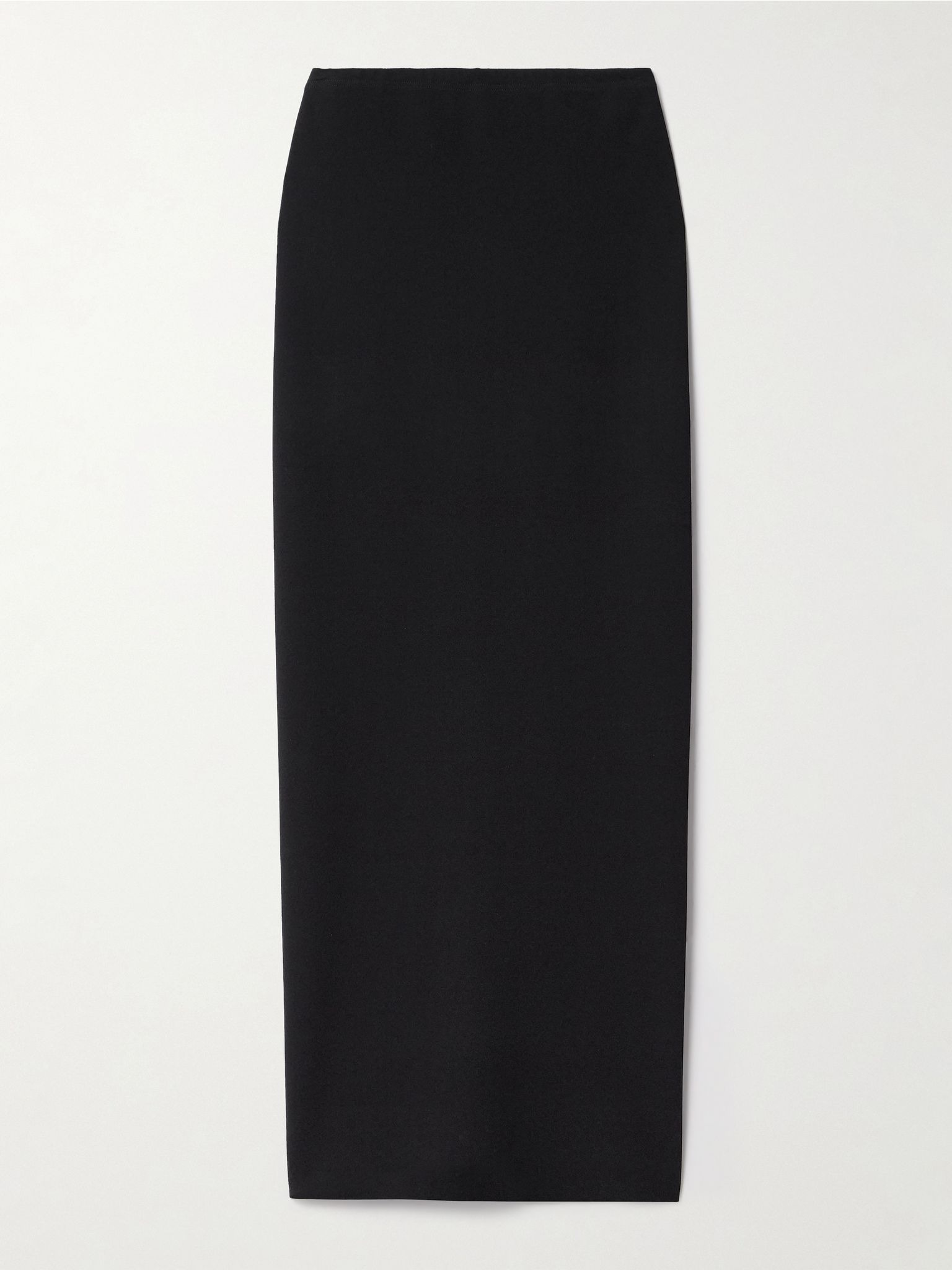 KHAITE's 'Lilth' maxi skirt has a minimalist design, making it suitable for a variety of occasions. It's cut for a close fit from lightweight crepe-jersey and has an elasticated waistband and streamlined silhouette. Pair yours with the label’s knitwear and boots. Size & Fit - Fits true to size, take your normal size - Maxi-length, designed to be worn at the waist - Partially elasticated at the waist - Mid-weight, slightly stretchy fabric - Model is 180cm/ 5'11" and is wearing a US 2 Model measurements: - Bust: 79cm/ 31" - Waist: 61cm/ 24" - Hip: 89cm/ 35" Details & Care - Black crepe-jersey - Slips on - 78% viscose, 16% polyamide, 6% elastane