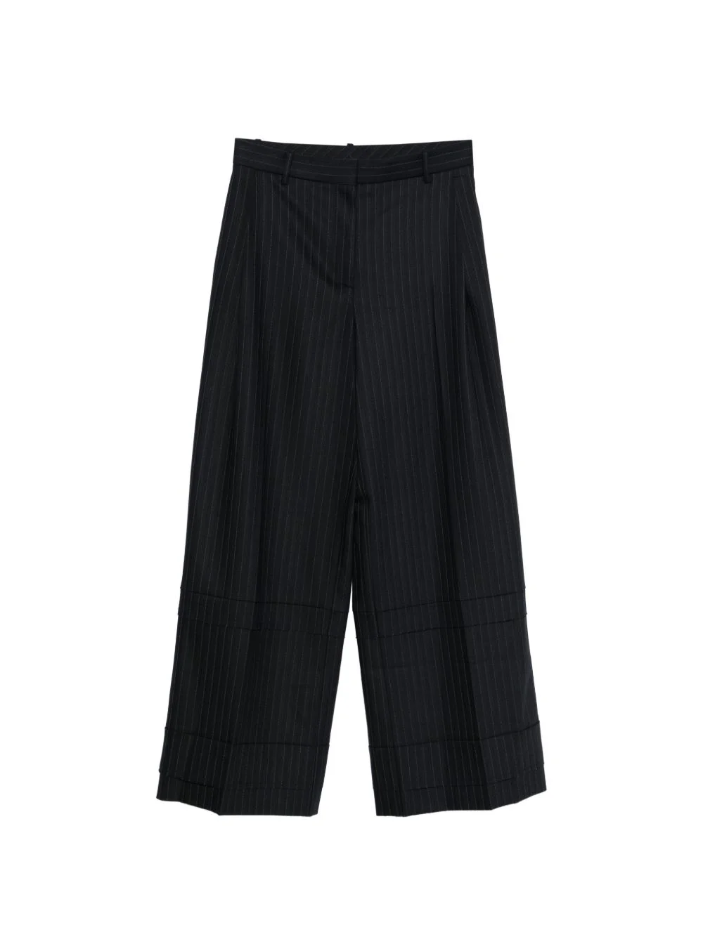 Linden palazzo pants Highlights - Navy blue - Pinstripe pattern - Wide leg - Belt loops - Concealed fastening Made in United States Composition Virgin Wool 96%, Elastane 2%, Cotton 2% Washing instructions Dry Clean Only