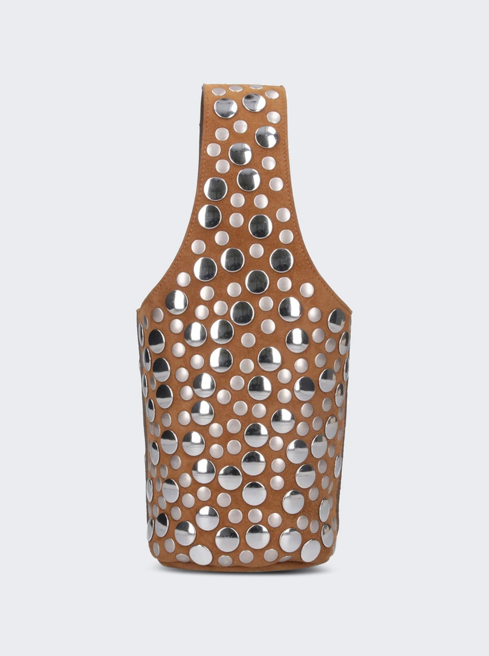 Details - Velvety suede mini bag - Pebble-link silver disc studs on the outside and inside - Leather base and integrated strap - Open top styling with one main compartment - Material: 100% Calfskin leather Size Information: Vendor Color Code: Brand Style: H2031-849 L849 Designer/Brand: KHAITE