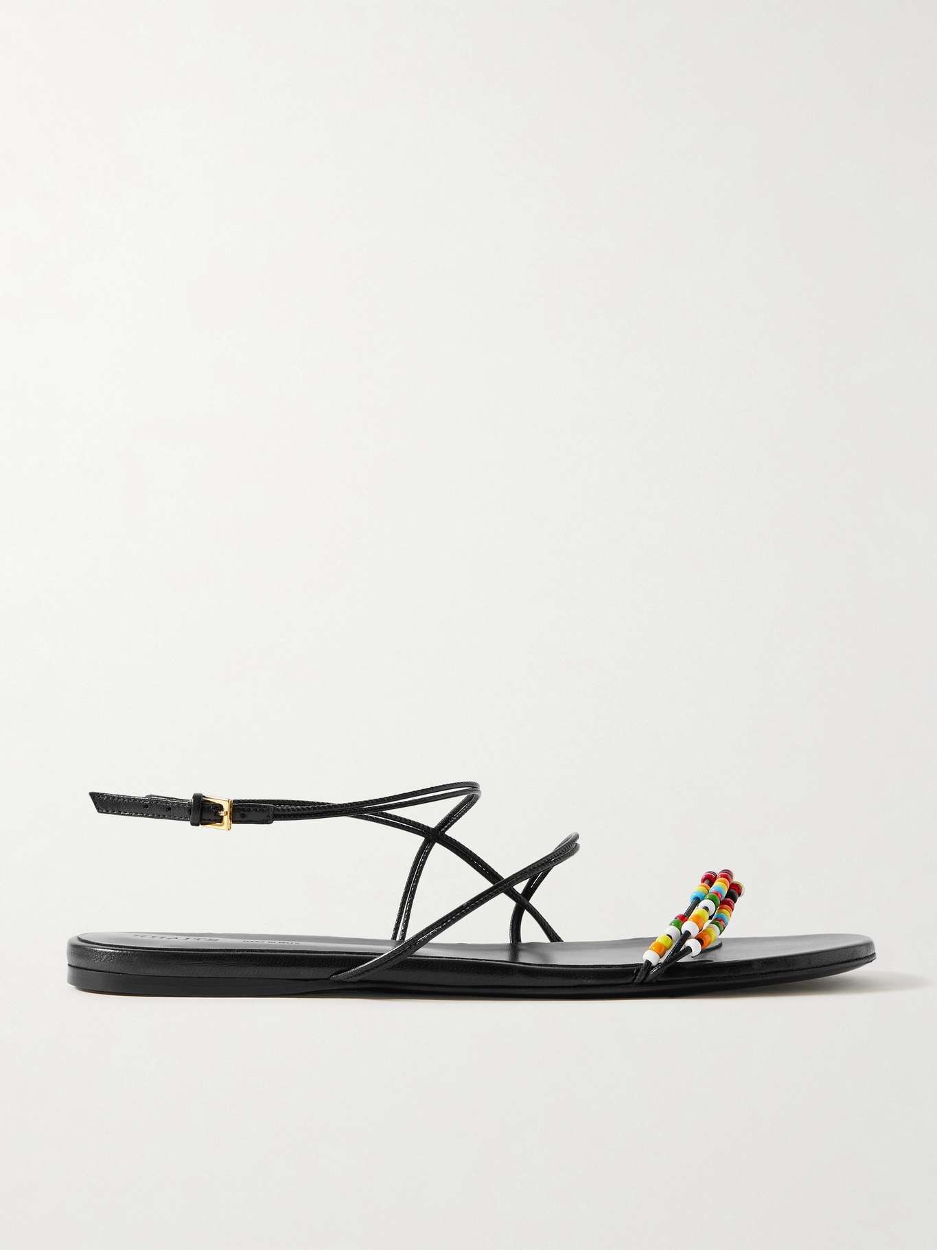 EDITORS'NOTES KHAITE's sandals are named for the slender, foot-framing straps that 'Loop' prettily around your foot. They're made from supple leather and threaded with colorful beads for a playful feel. SIZE & FIT - Fits true to size, take your normal size - Italian sizing DETAILS & CARE - Slight heel - Black leather (Goat) - Buckle-fastening ankle strap